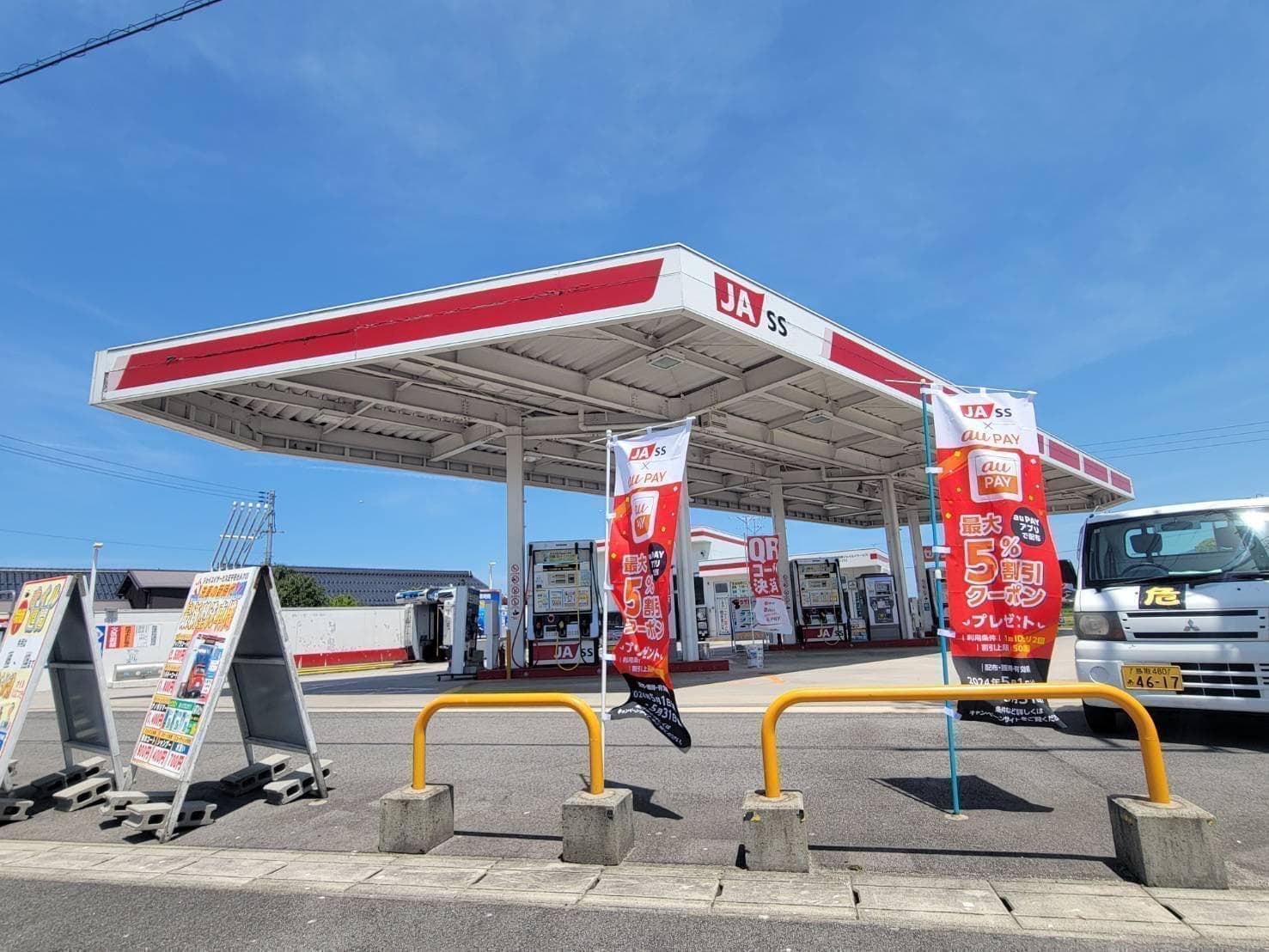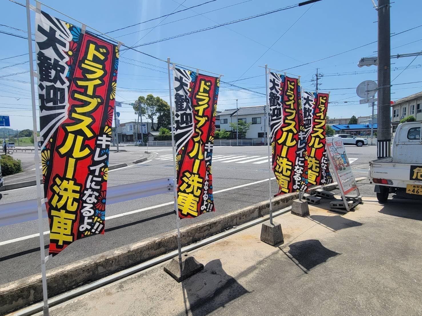 国道181号米子田園地帯中央の明るいセルフSSで、最新機械洗車がおすすめ。