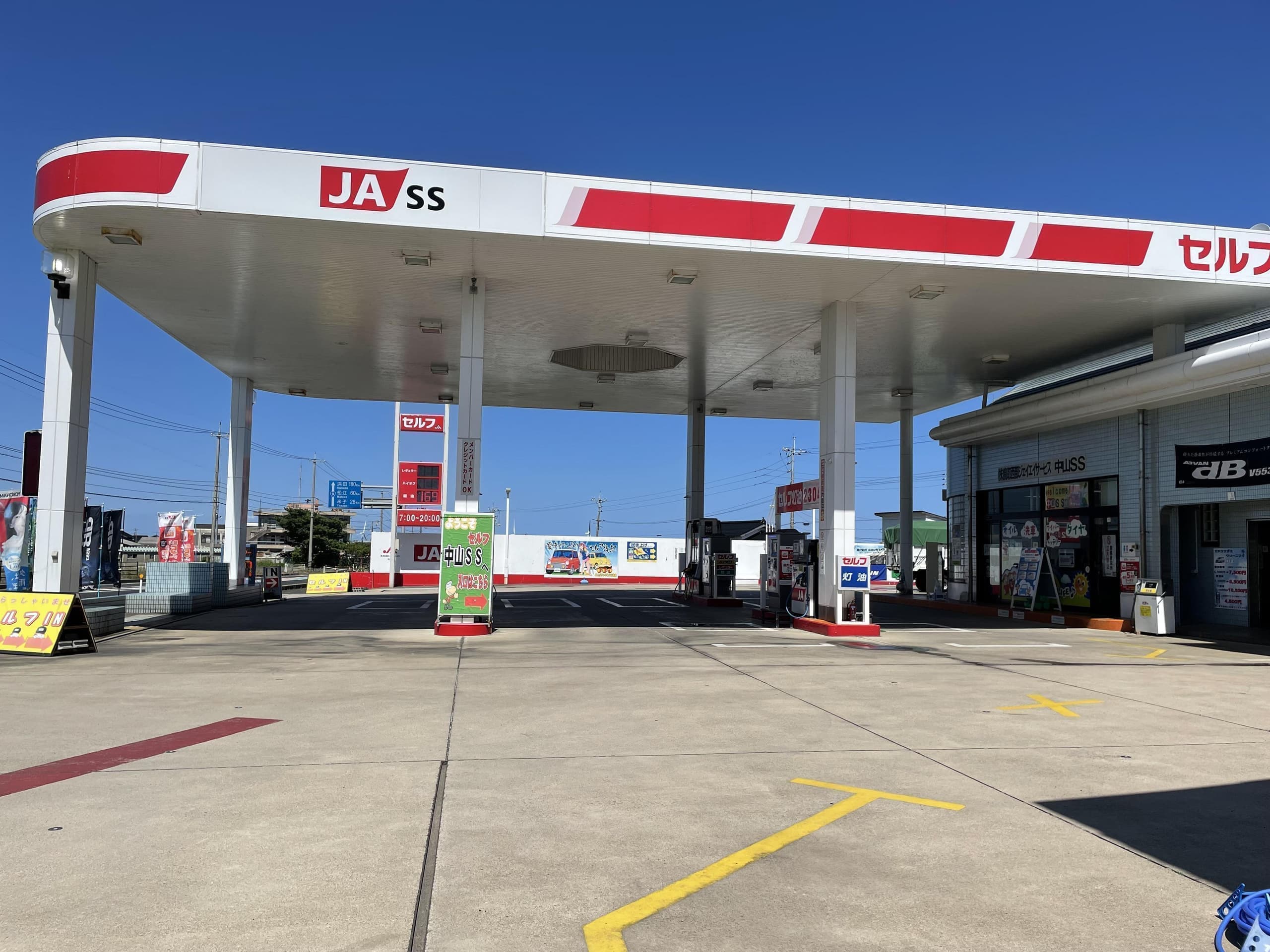 旧国道9号線中山地区唯一のセルフSS。地元のカーケアの信頼が厚い。