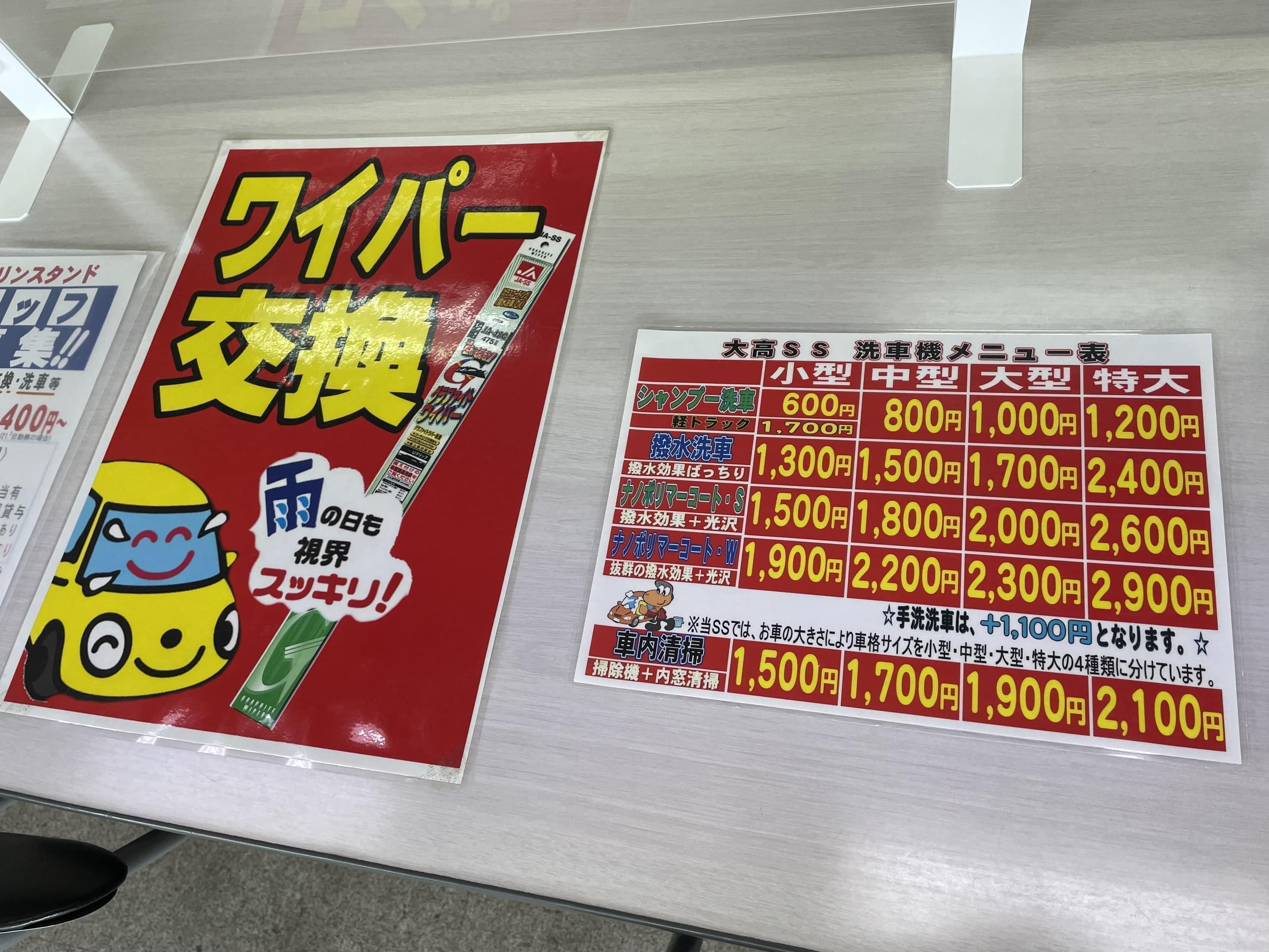| 洗車受付時間 | 機械・手洗い共:9:00~16:00 預かり洗車無し |