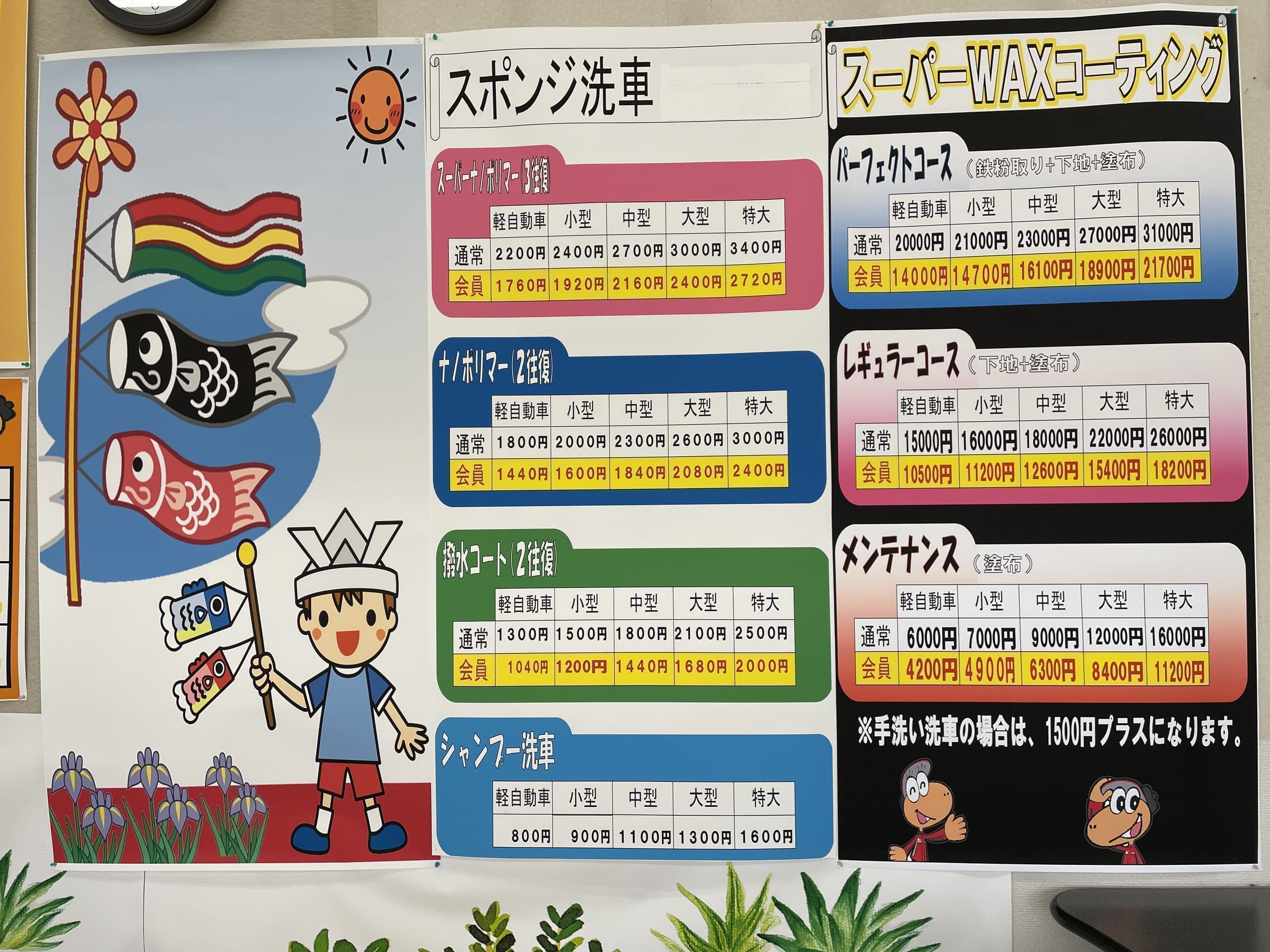 | 洗車受付時間 | 機械・手洗い共:9:00~16:30 預かり洗車有り |