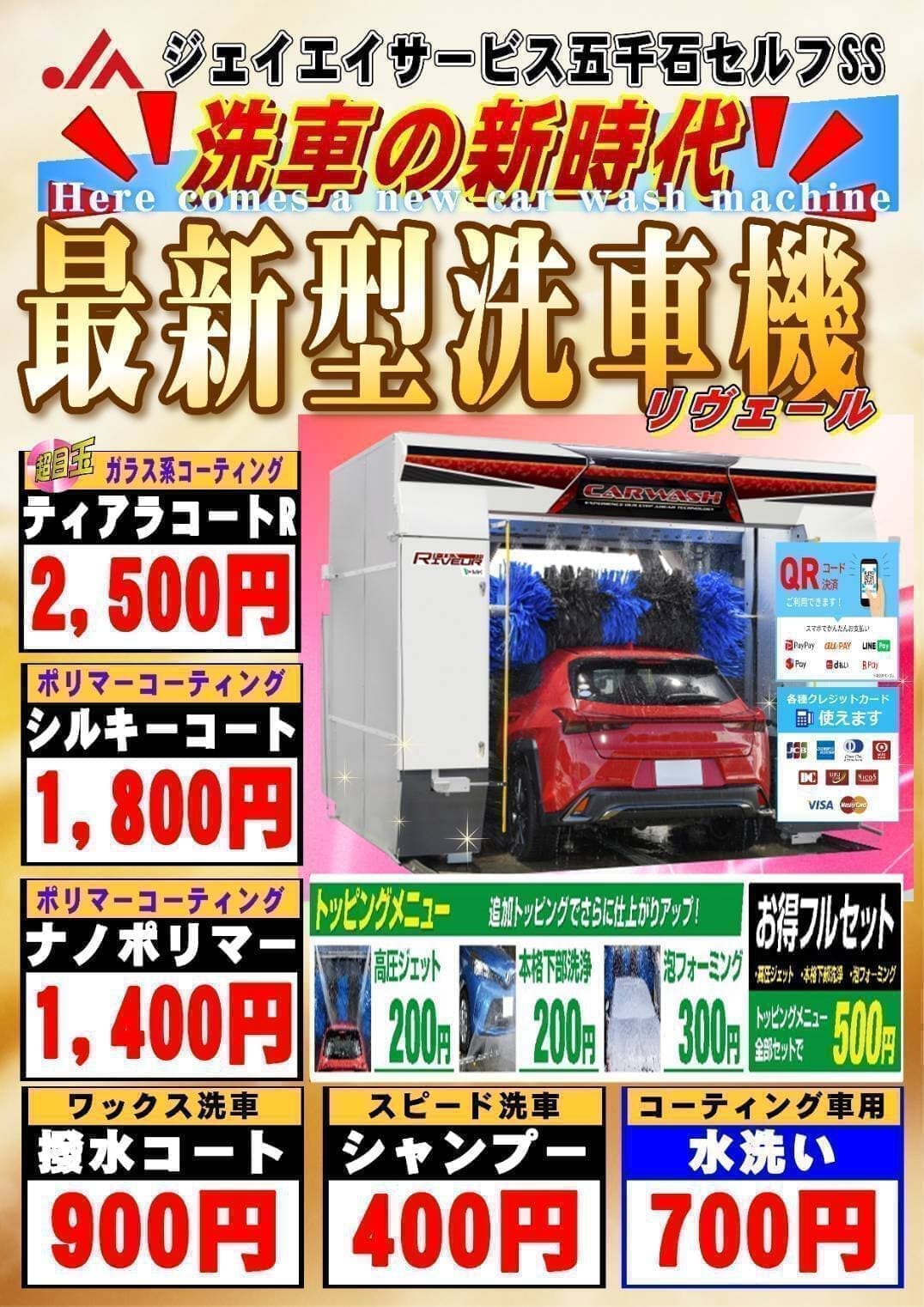 | セルフ洗車受付時間 | 7:00~19:30 預かり洗車無し |
