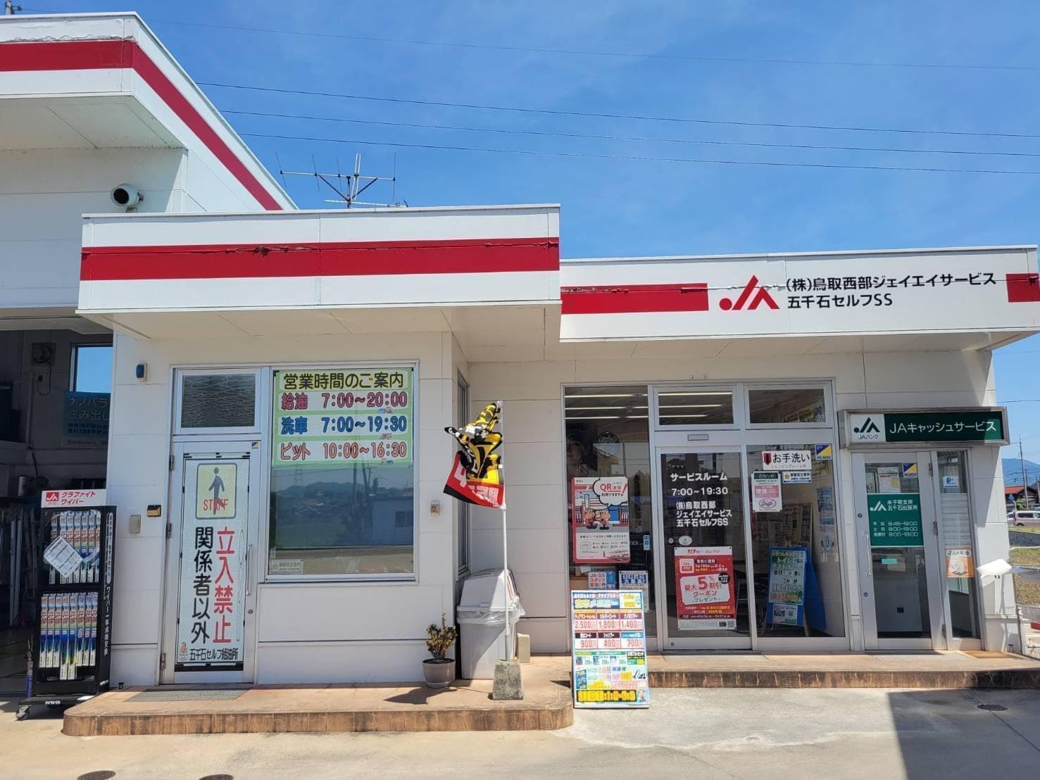 国道181号米子田園地帯中央の明るいセルフSSで、最新機械洗車がおすすめ。