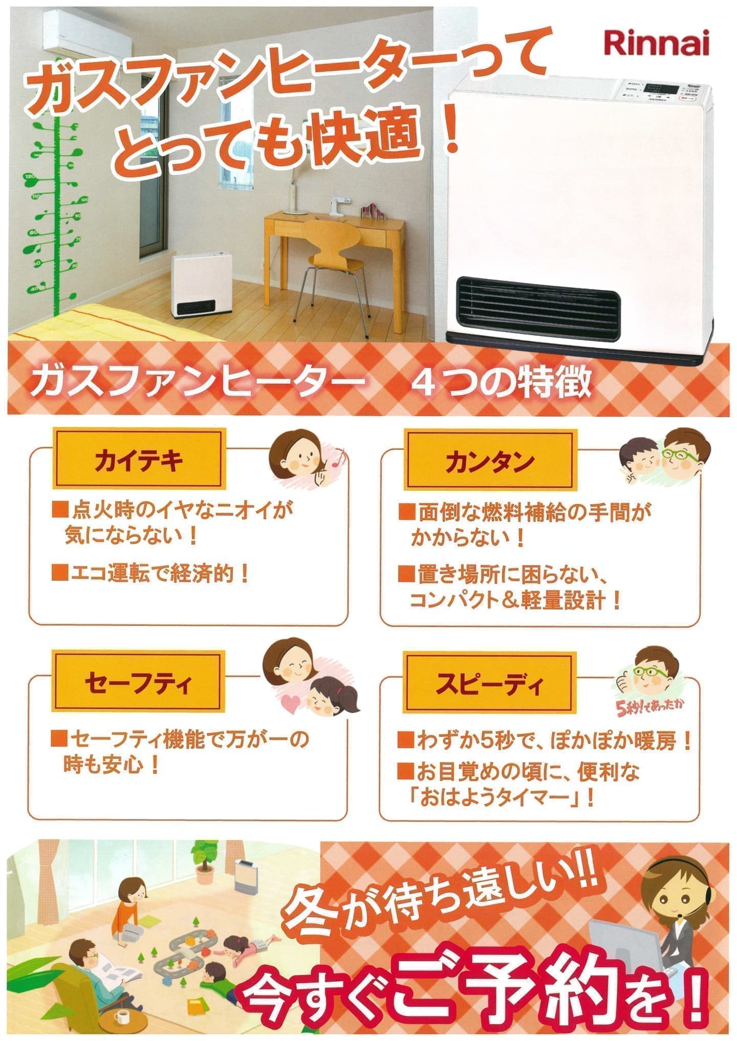 LPガスの暖房機で暖かく快適な冬をお過ごしください。